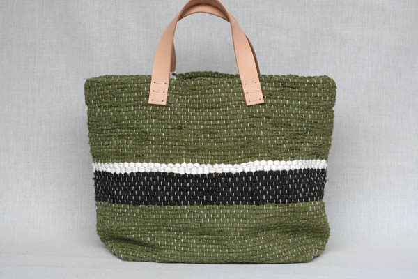 | 素材 | 表地:cotton100% 縦糸:linen 100% 裏地:cotton 100% 取っ手:Leather Strap |